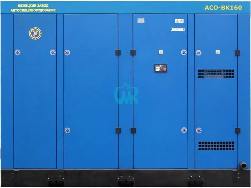Стационарный винтовой компрессор АСО-ВК160/8 (10) Бежецкого завода АСО рассчитан на производительность 26с(22) м3/мин и максимальное рабочее давление 8 (13) атм. Винтовой блок EVO42, привод 160 кВт. Уровень шума 76-80 дБа. Температура воздуха на всасывании в диапазоне от 10 до 45 °С, температура воздуха после газоохладителя не более 50 °С. Габариты 310 х 210 х 220 см., масса 3000 кг.