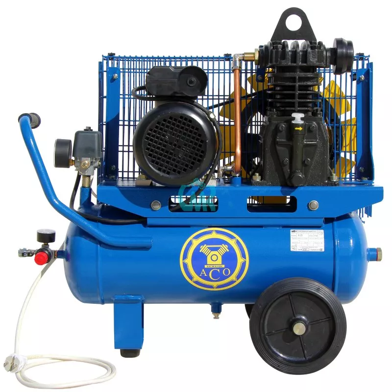 Передвижной поршневой компрессор К29 производства Бежецкого завода АСО с компрессорной головкой С412М имеет ременной привод от однофазного электродвигателя мощностью 2.2 кВт напряжением 220 В. Производительность компрессора 300 л/мин, производительность по нагнетанию 160 л/мин. Максимальное рабочее давление 8 атм. Реле давления Condor MDR. Размеры 82×40×85 см, масса 82 кг.